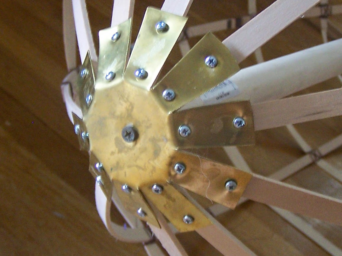 I cut out end pieces from brass sheet and screwed them into the dowels, and then used machine screws and nuts to attach the struts to them.